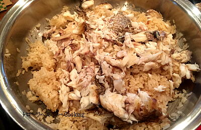 【3】出来上がったら骨を取り身をほぐし混ぜる。
