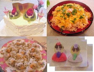 | 2013年3月 ばら寿司・蛤と三つ葉のお吸い物・サラダ・おひな様ケーキ ![]() |