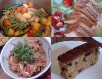 ![]() 02,11月 炊き込みご飯・・つみれ汁・・鶏肉塩胡椒ステーキ・・てんぷら・・さつまいもとリンゴのケーキ |
