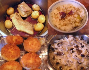| 10年10月 サンマと野菜のフリッター・キノコの炊き込みご飯・切り干し大根の煮物・茶碗蒸し・紅茶のケーキ ![]() |