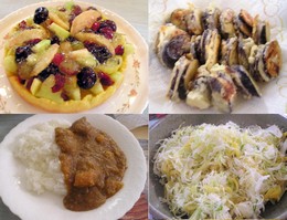 9年07月 チキンカレー・ナスのはさみ揚げ・キャベツとたくわんのサラダ・フルーツタルト ![]() |