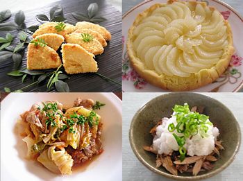 10年04月 筍のフライ・キャベツと豚肉のパスタソース・生節の大根おろし・洋なしのタルト ![]() |