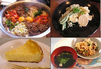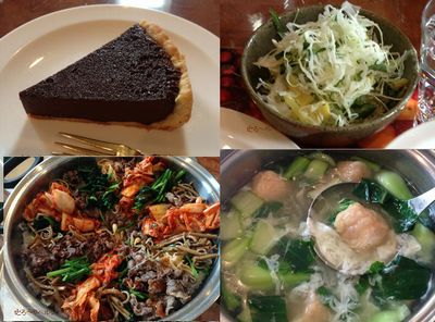 | 2013年6月 石焼きビビンバ・キャベツとたくわんのサラダ・海老シュウマイと青梗菜の中華スープ・チョコレートタルト ![]() |