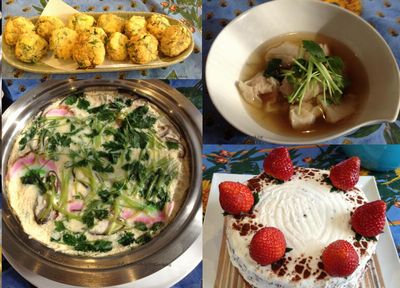 2013年1月 豆腐のかき揚げ・ワンタンスープ・茶碗蒸し・生姜ご飯・ココア生地のいちごのケーキ ![]() |
