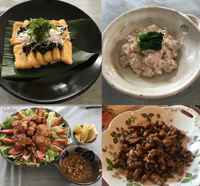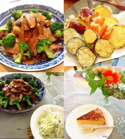 ![]() 02,09月 鶏の紅茶煮と茄子の冷製・・豆腐ステーキ・・サツマイモのケーキ |